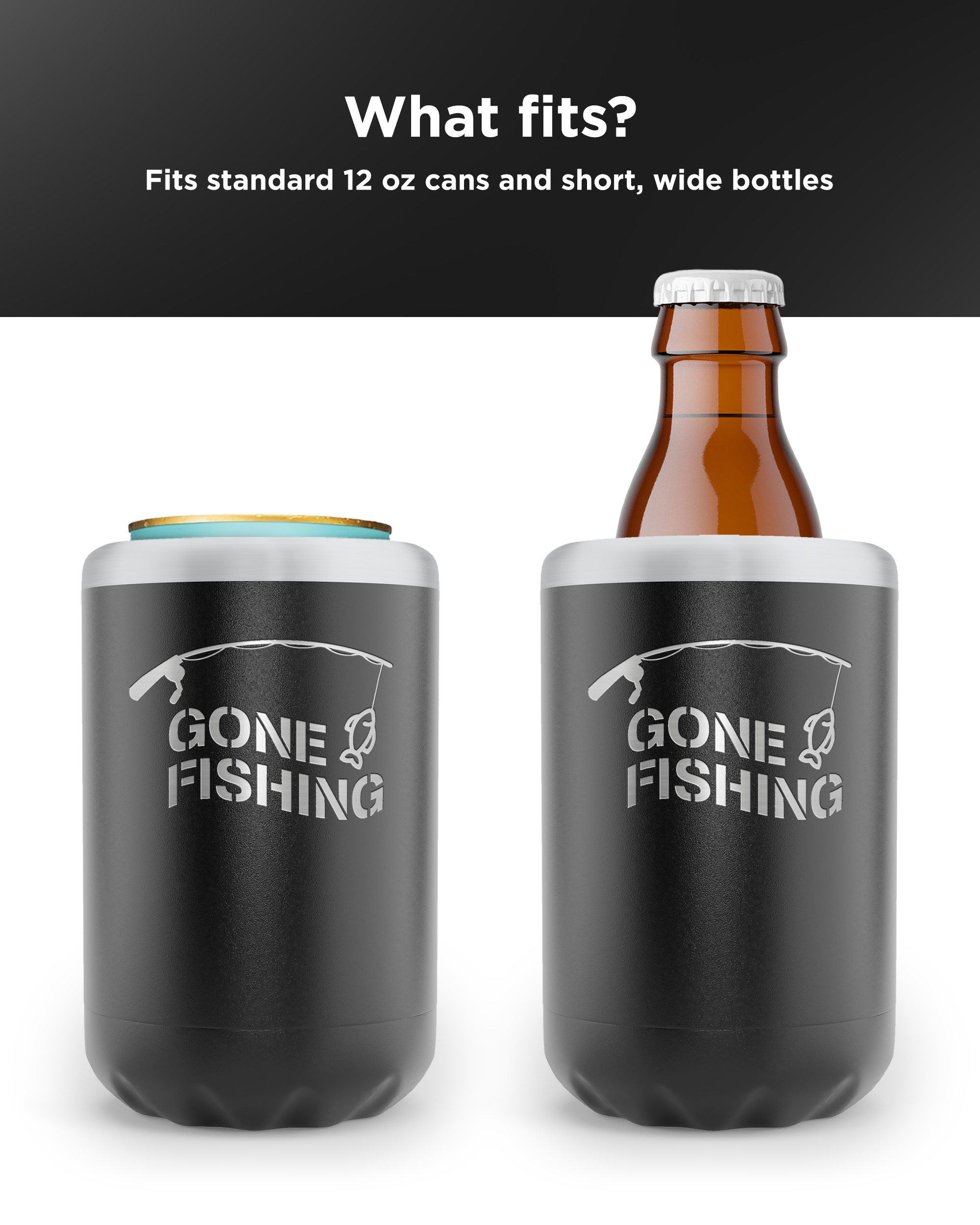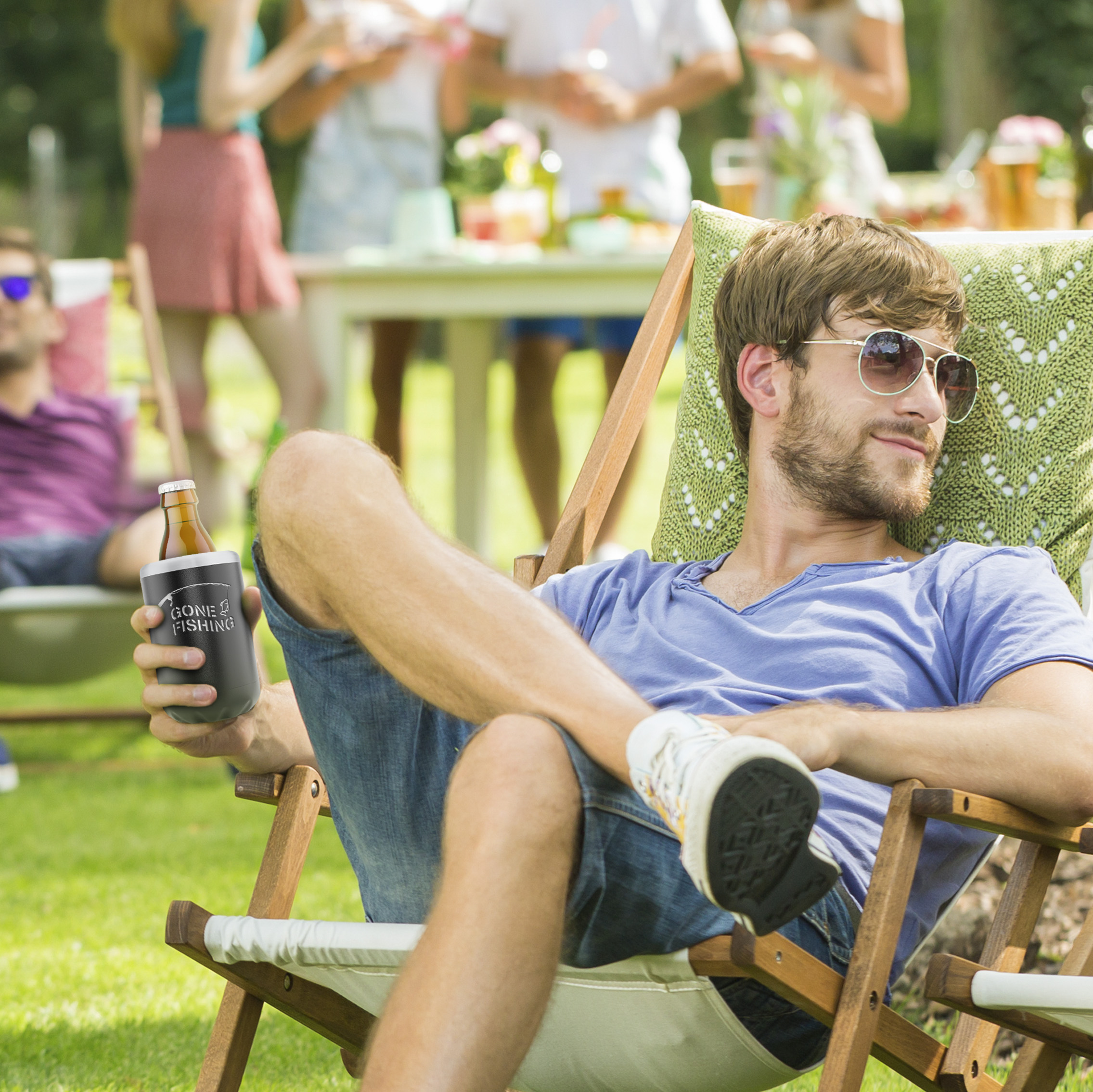 SoHo 12oz Can Cooler – Black “GONE FISHING”