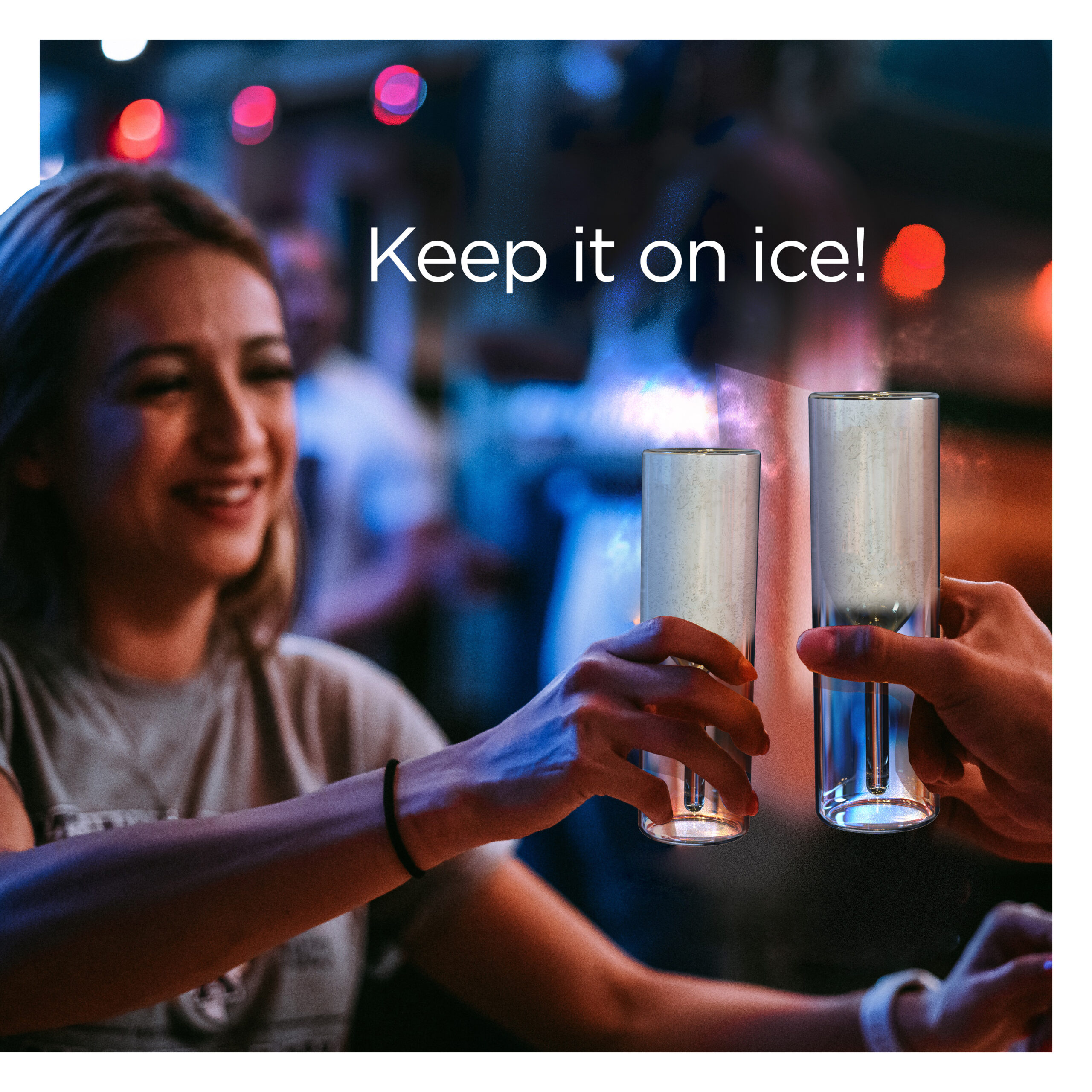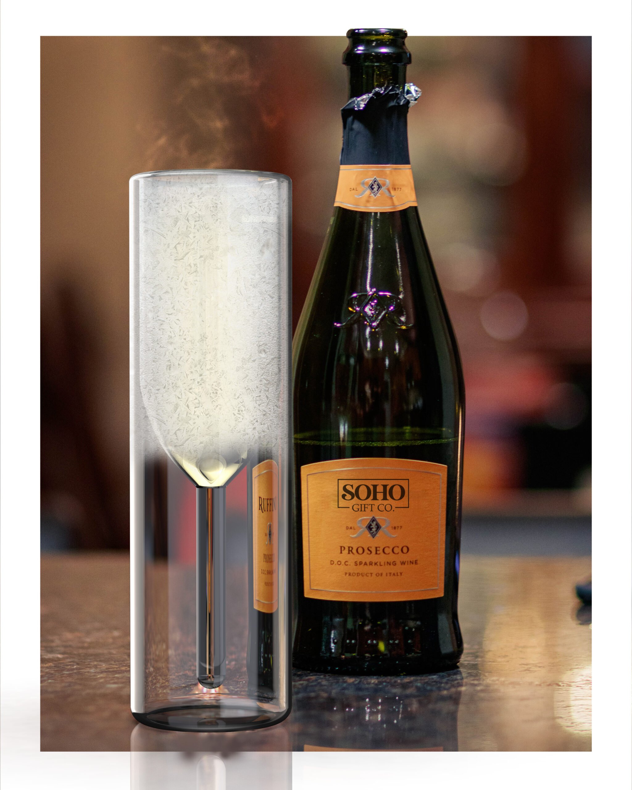 Built-in freezer gel turns her favorite champagne ice cold in seconds and keeps it cold, without any dilution! (Recommended freeze time: 3+ hours)