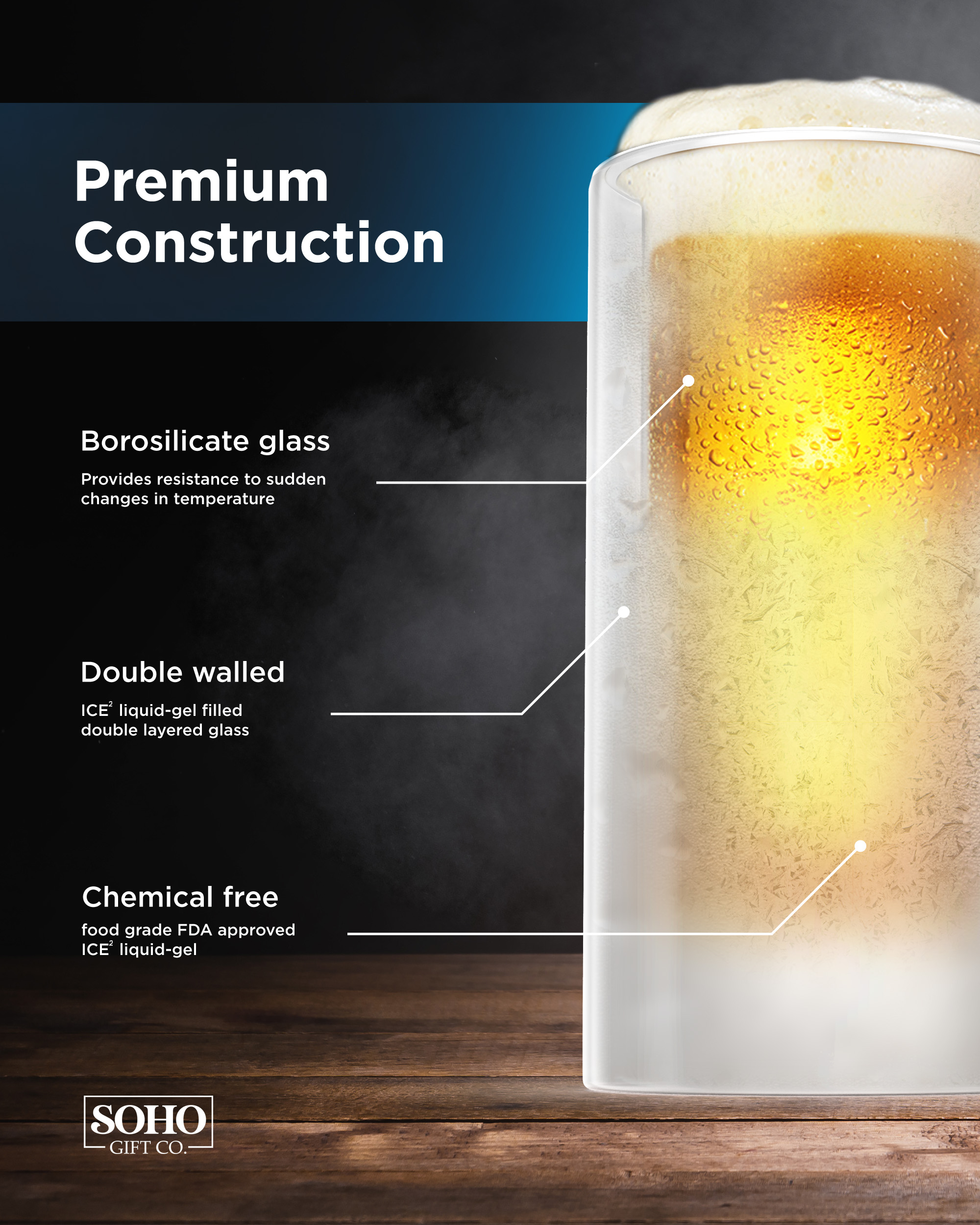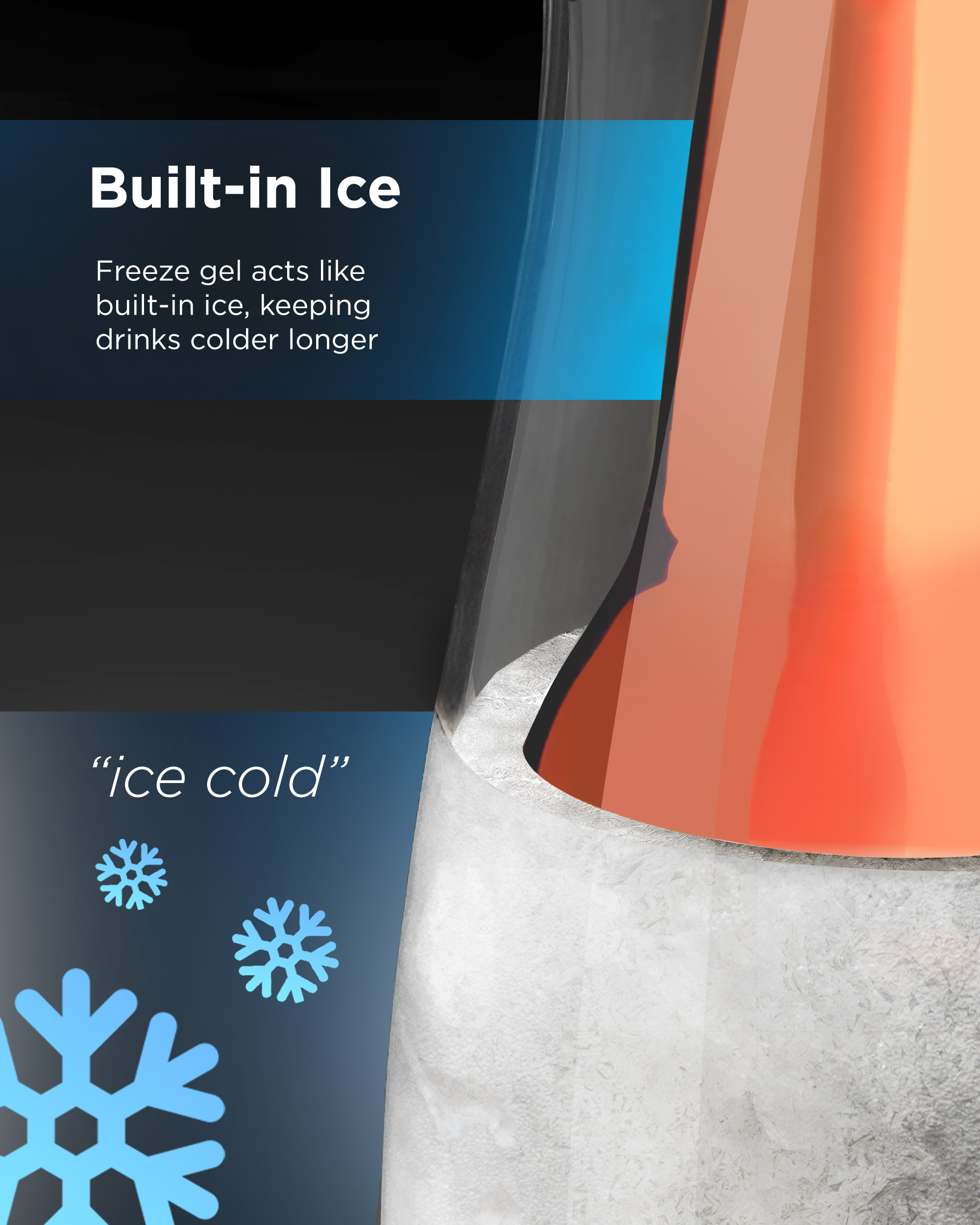 Built-in freezer gel turns his favorite brew ice cold in seconds and keeps it cold, without any dilution! (Recommended freeze time: 3+ hours)