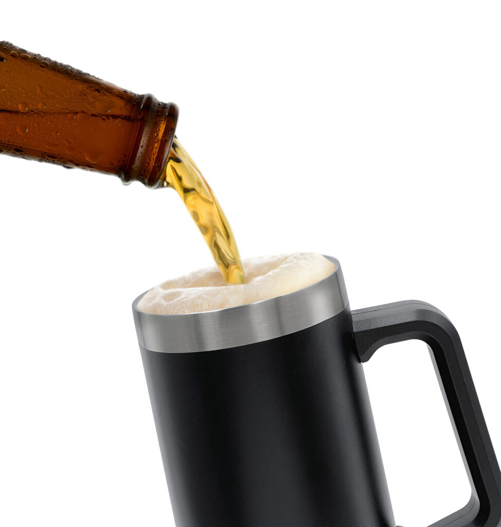 Extra large, extra durable design holds up to 24 ounces beer or coffee, with an extra large handle for a firm grip.