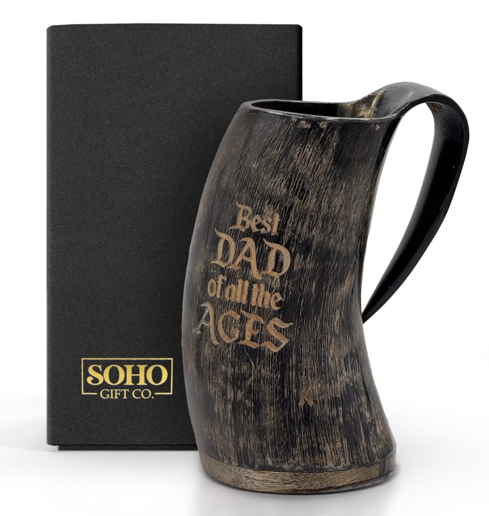 The smooth, polished interior ensures a comfortable drinking experience, while the sturdy design guarantees it will withstand the test of time. Whether he's sipping on a hearty ale or a warm beverage, your dad will feel like a true Viking.