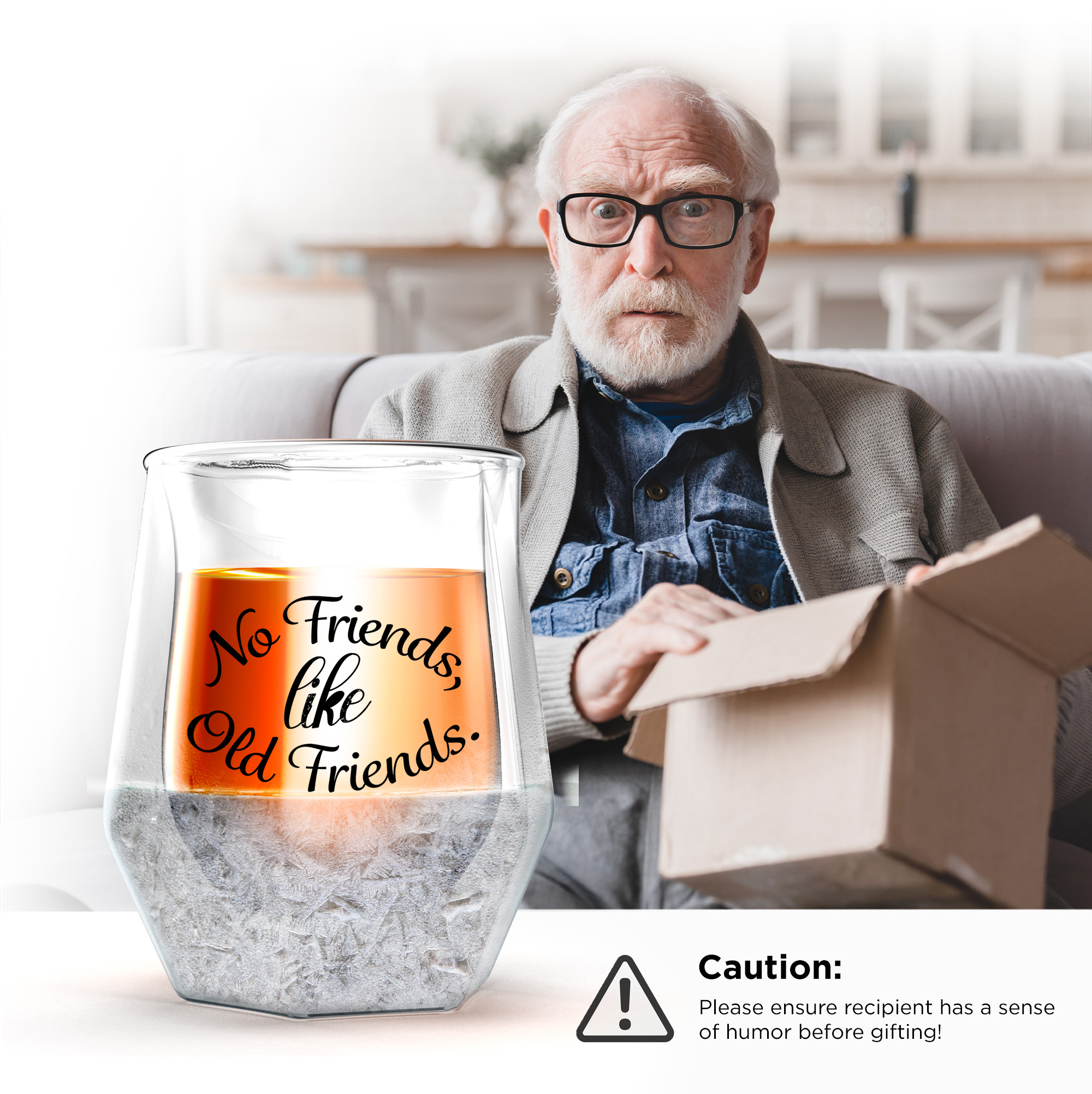 This whiskey glass makes a fun and unexpected gift, with a good humored message that is sure to bring a smile to his face.
