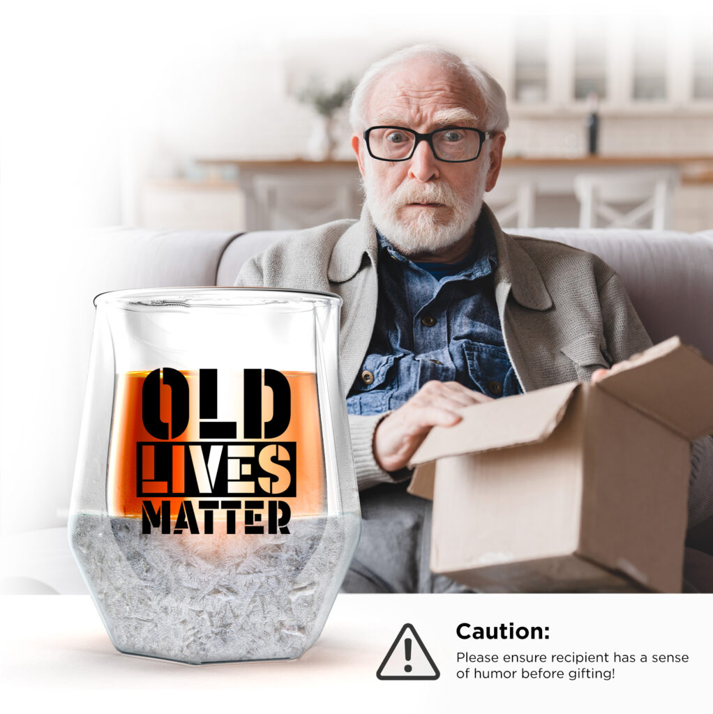 This whiskey glass makes a fun and unexpected gift, with a good humored message that is sure to bring a smile to his face.